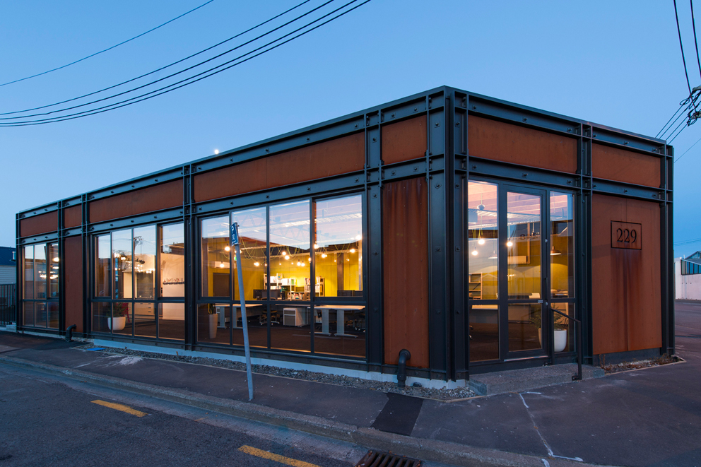 объект: мини офис компании Constructure Structural engineering место: Lichfield Street, Christchurch, компания: Constructure Structural engineering статус: 2012 Это единственная постройка, частично уцелевшая после землетрясения в 2011 году в этом районе. Остальные здания были полностью разрушены. Философия восстановления бывшего магазина заключалась в том, чтобы показать более крепкую, мощную, устойчивую к силам природы, конструкцию. Бетонная стойка и