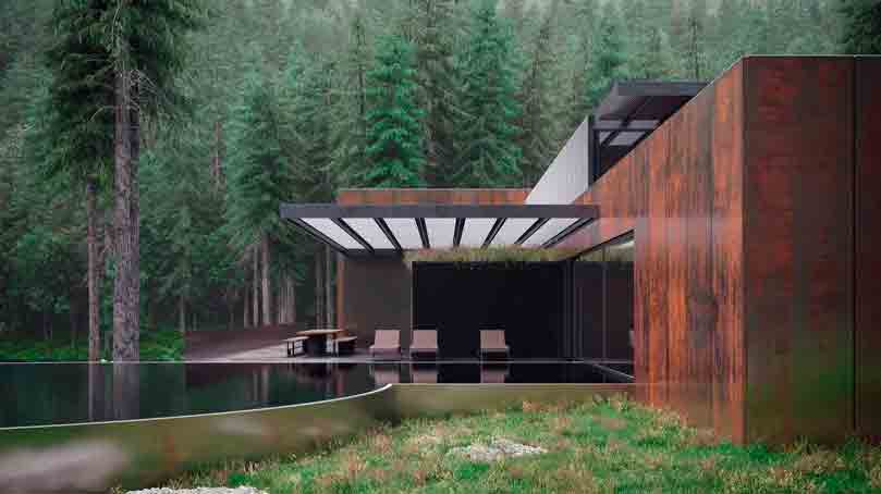 Каким должно быть место, куда хочется убежать от суетливой городской жизни, от вертикали высотных домов и амбициозной толпы? На этот вопрос гениальный украинский архитектор Сергей Махно ответил новым проектом дома из стали corten в уединенном уголке карпатского леса. Сильный и могущественный снаружи, теплый и чувственный внутри, дизайн отчетливо передает украинский характер.