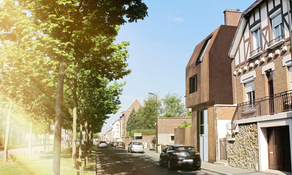 Расширение состоит из простых геометрических объемов, строго соответствующих правилам строительства амьенских домов.