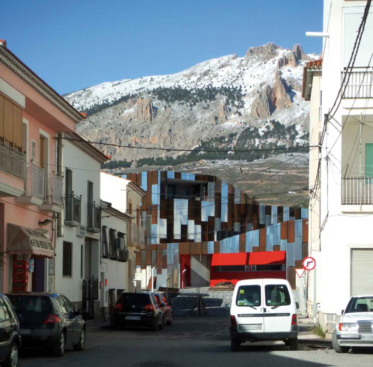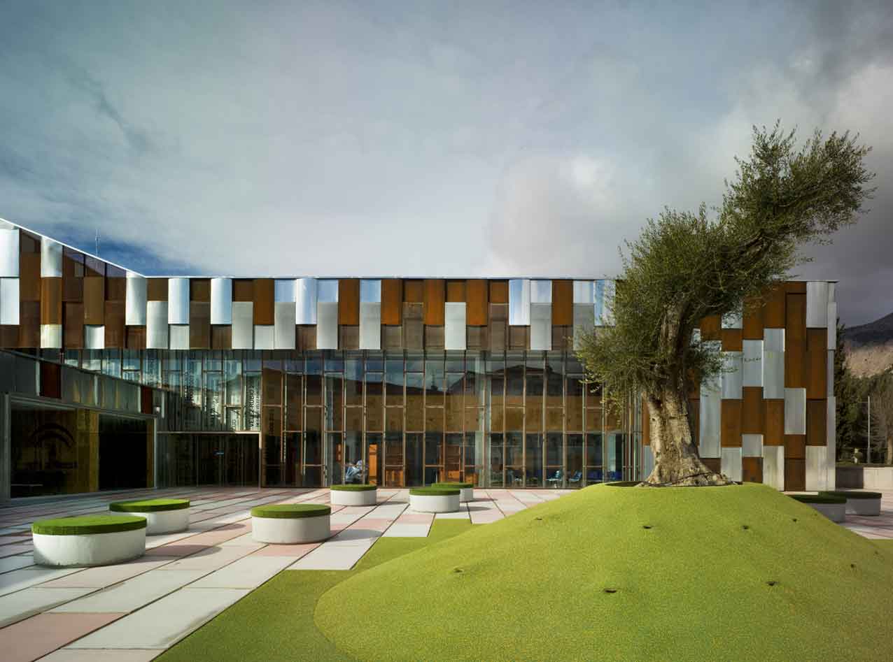 Естественно в такой среде важно было определить внешний вид фасада здания, который бы соответствовал внешнему окружению, его истории, был бы также долговечен, как древние знаки в пещерах. Собственно говоря, великолепие Алмерии и загадочные объекты определили основные ключи для создания объема, формы и облицовки строения.