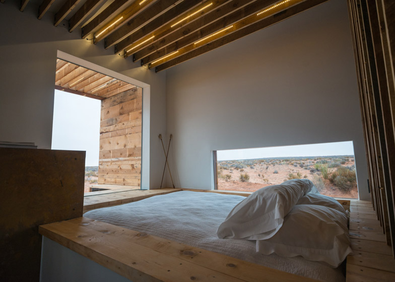 Ориентация каждой каюты основана на традиции навахо восточного входа, где дверь всегда находится на восточной стороне, чтобы приветствовать солнце.