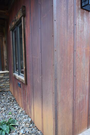 Клиенты также участвовали в подборе множества креативных деталей. После совместных размышлений специалисты выбрали сталь кортен, текстура и цвет которой как нельзя лучше соответствовали растущим вблизи соснам сорта Пандероза. Ржавые панели стали идеальным материалом для имитации традиционного горного строительства 1800-х гг.