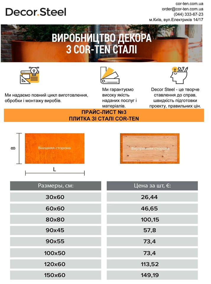 Плитка для пола и стен с кор-тен стали