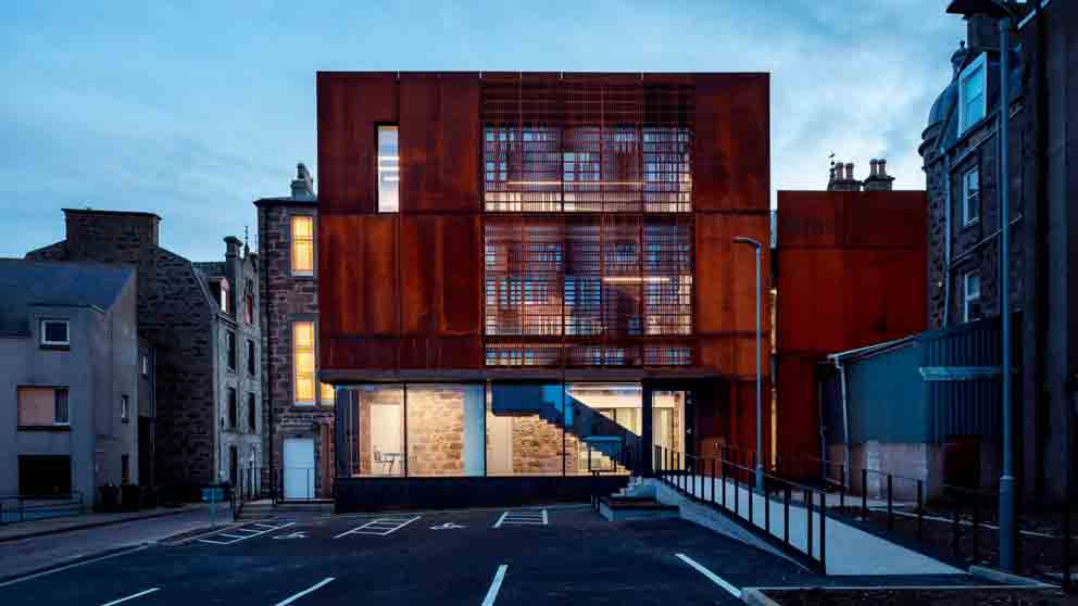 В северных окрестностях Абердиншира находится рыбацкий порт Фразербург – гордый город, богатый историей и морской культурой. Будучи важным архитектурным достоянием, городская ратуша требовала обширной реставрации. Соседствующее здание, в котором ранее располагался полицейский участок, также готовилось к перестройке и ремонту. Стало необходимым объединить между собой оба строения, соблюдая стилистику, подчеркивая и приумножая историческую ценность обоих, добавив некую современную конструкцию.