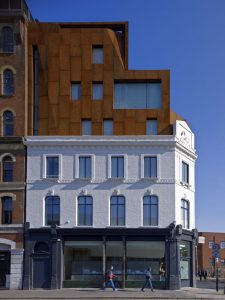 Дизайн нового отеля можно прочитать как «коробка в коробке», при этом возведенное здание «вырастает» из фасада старого паба.