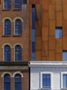 качества corten стали гармонично сочетаются с исторической кирпичной кладкой